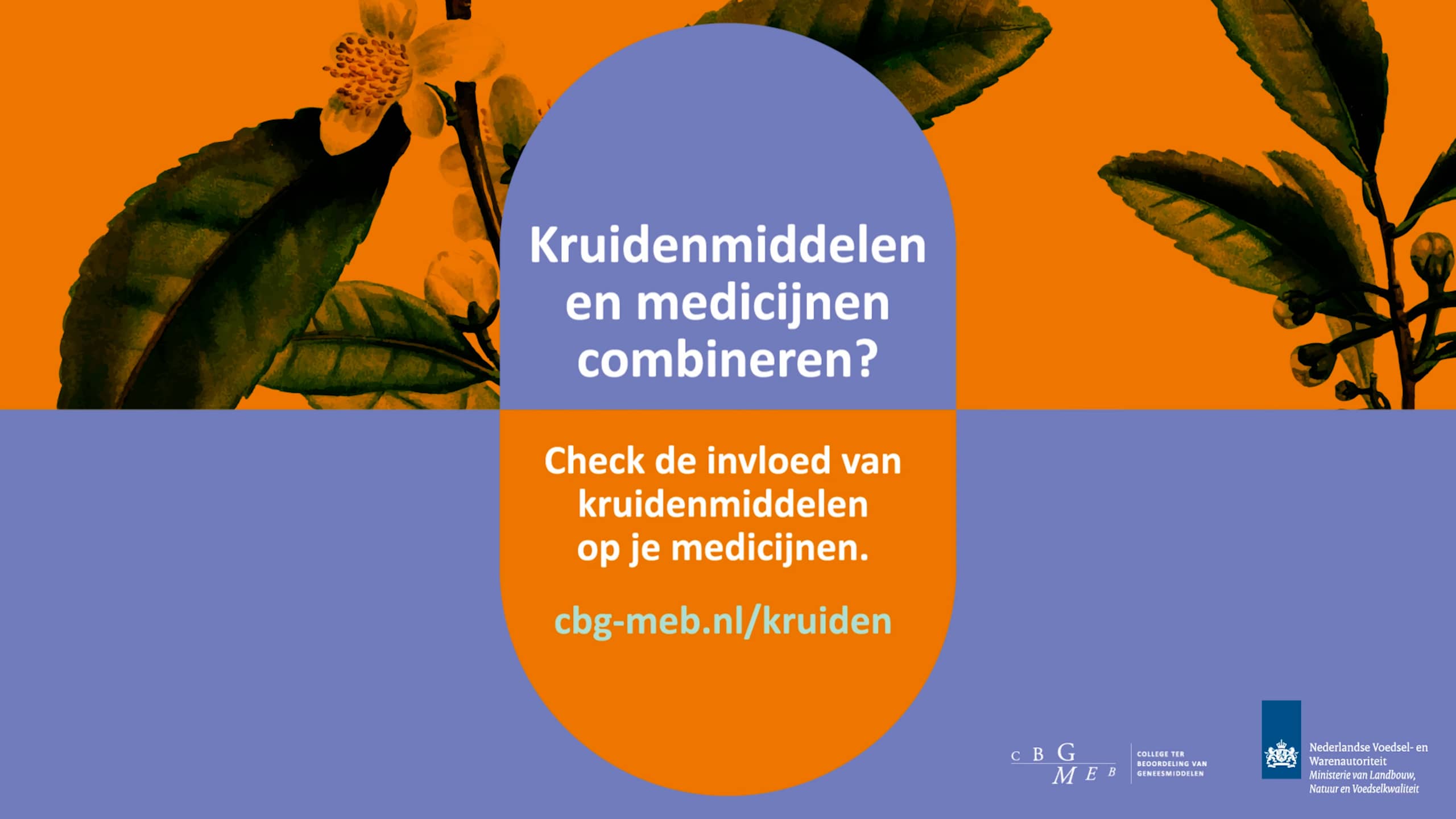 In de periode van 11 tot en met 31 maart vragen het CBG en de Nederlandse Voedsel- en Warenautoriteit (NVWA) aandacht voor de risico's van het combineren van medicijnen en kruidenmiddelen. De campagne 'Weet wat je slikt' is onder andere te zien in drogisterijen en wachtkamers van zorgpraktijken.