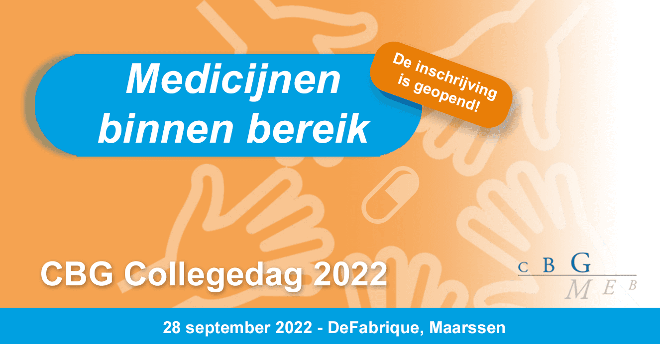 Op woensdagmiddag 28 september 2022 organiseert het CBG de jaarlijkse Collegedag met als thema ‘Medicijnen binnen bereik’. De ...